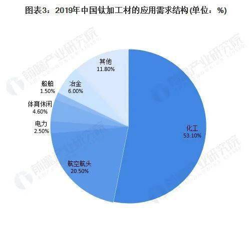 在我國鈦材的需求結(jié)構(gòu)中,鈦加工材料主要應(yīng)用于化工領(lǐng)域,與全球相比最主要的差別在航空領(lǐng)域,全球范圍內(nèi)航空用鈦材始終占據(jù)鈦材總需求的53%左右,而國內(nèi)航空航天用鈦材的比例僅為20%,說明我國航空用鈦材市場還存在較大潛力。
