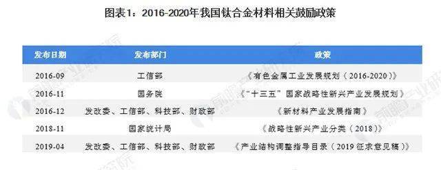 鈦合金指的是多種用鈦與其他金屬制成的合金金屬,近年來,我國頻頻發(fā)布政策鼓勵(lì)鈦合金材料的研發(fā)、生產(chǎn)及應(yīng)用。在全球市場中,鈦合金材料主要應(yīng)用于航空工業(yè)、國防軍工以及其他工業(yè)。其中,在航空工業(yè)的應(yīng)用需求最大,約占50%,主要是用于飛機(jī)和發(fā)動(dòng)機(jī)的制造。在我國鈦材的需求結(jié)構(gòu)中,鈦加工材料主要應(yīng)用于化工領(lǐng)域,而國內(nèi)航空航天用鈦材的比例僅為20%,說明我國航空用鈦材市場還存在較大潛力。目前,在高端鈦合金領(lǐng)域,我國能夠批量生產(chǎn)軍用航空鈦合金棒絲材的企業(yè)較少,呈“雙寡頭”的競爭格局。 1、政策鼓勵(lì)鈦合金材料的發(fā)展 鈦合金指的是多種用鈦與其他金屬制成的合金金屬。世界上許多國家都認(rèn)識(shí)到鈦合金材料的重要性,相繼對(duì)其進(jìn)行研究開發(fā),并得到了實(shí)際應(yīng)用。近年來,我國也頻頻發(fā)布政策鼓勵(lì)鈦合金材料的研發(fā)、生產(chǎn)及應(yīng)用。2019年,據(jù)《產(chǎn)業(yè)結(jié)構(gòu)調(diào)整指導(dǎo)目錄(2019征求意見稿)》披露的信息顯示,將高性能超細(xì)、超粗、復(fù)合結(jié)構(gòu)硬質(zhì)合金材料及深加工產(chǎn)品、低模量鈦合金材料、耐蝕鈦合金材料、航空航天用鈦合金緊固件等列為產(chǎn)業(yè)結(jié)構(gòu)調(diào)整鼓勵(lì)類項(xiàng)目。