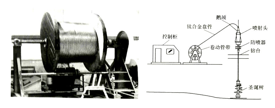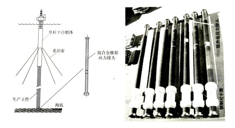圖3 鈦合金超深井鉆管在小曲率半徑鉆井上應用示意圖 3、錐形應力接頭 鈦制錐形應力接頭是用Grade23(Ti-6A-4V ELI) 和Grade29(Ti-6A-4V-Ru) 鈦合金制造的巨型鈦管,圖4給出了這種鈦合金錐形應力接頭應用示意圖及產品實物照片。該應力接頭目前已應用于墨西哥灣油田, 其長度只有鋼制接頭的1/3, 規格為Φ(80~559) mm×(6.4~15.2)m,二者成本相當。 4、井下作業流送管 井下作業流送管通常采用Grade2、Grade7、Grade9、Grade12、Grade18、Grade28等六種鈦及鈦合金焊接盤管制造,目前的最大外徑為63.5mm,最小壁厚為3.2mm,盤管長度可達1630~3050m。據報道,未來盤管的目標外徑希望達到152mm。使用鈦合金盤管代替鋼制盤管后,其盤管的疲勞壽命是鋼制盤管的5~10倍。同時,其在含酸或含硫井中的腐蝕疲勞壽命也得到了較大提高。圖5為鈦合金盤管的產品實物照片及其應用示意圖。 圖4 鈦合金錐形應力接頭應用示意圖及產品實物照片 圖5 井下作業流送管產品實物照片及其應用示意圖 目前,我國鈦制油氣開采和開發設備尚處于研發階段,除鈦制輸油管道外,尚無鈦制設備應用的報道,與國外差距較為明顯。 歐美國家對于海洋油氣資源的開采,已逐步向深海邁進,目前開采深度已達3000m,而我國仍處于300m海深的近海開采階段。要進一步開發海洋油氣資源,特別是南海油氣資源,就必須發展鈦制油氣開采設備,這對于開發海洋資源,發展海洋經濟意義巨大。 |
