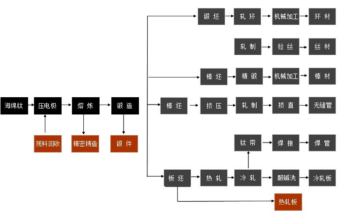 目前,金屬鈦生產(chǎn)的工業(yè)方法是可勞爾法,產(chǎn)品為海綿鈦。制取鈦材傳統(tǒng)的工藝是將海綿鈦經(jīng)熔鑄成錠,再加工而成鈦材。按此,從采礦到制成鈦材的工藝過(guò)程的主要步驟為:鈦礦->采礦->選礦->太精礦->富集->富鈦料->氯化->粗TiCl4->精制->純TiCl4->鎂還原->海綿鈦->熔鑄->鈦錠->加工->鈦材或鈦部件上述步驟中如果采礦得到的是金紅石,則不必經(jīng)過(guò)富集,可以直接進(jìn)行氯化制取粗TiCI4。另外,熔鑄作業(yè)應(yīng)屬冶金工藝,但有時(shí)也歸入加工工藝。  上述工藝過(guò)程中的加工過(guò)程是指塑性加工和鑄造而言。塑性加工方法又包括鍛造、擠壓、軋制、拉伸等。它可將鈦錠加工成各種尺寸的餅材、環(huán)材、板材、管材、棒材、型材等制品,也可用鑄造方法制成各種形狀的零件、部件。  鈦和鈦合金塑性加工具有變形抗力大;常溫塑性差、屈服極限和強(qiáng)度極限比值高、回彈大、對(duì)缺口敏感、變形過(guò)程易與模具粘結(jié)、加熱時(shí)又易吸咐有害氣體等特點(diǎn),塑性加工較鋼、銅困難。 故鈦和鈦合金的加工工藝必須考慮它們的這些特點(diǎn)。  鈦采用塑性加工,加工尺寸不受限制,又能夠大批量生產(chǎn),但成材率低,加工過(guò)程中產(chǎn)生大量廢屑?xì)埩稀?/strong> 針對(duì)鈦塑性加工的上述缺點(diǎn),近年來(lái)發(fā)展了鈦的粉末冶金工藝。鈦的粉末冶金流程與普通粉末冶金相同,只是燒結(jié)必須要在真空下進(jìn)行。它適用乎生產(chǎn)大批量、小尺寸的零件,特別適用于生產(chǎn)復(fù)雜的零部件。這種方法幾乎無(wú)須再經(jīng)過(guò)加工處理,成材率高,既可充分利用鈦廢料作原料,又可以降低生產(chǎn)成本,但不能生產(chǎn)大尺寸的鈦件。鈦的粉末冶金工藝流程為:鈦粉(或鈦合金粉)->篩分->混合->壓制成形->燒結(jié)->輔助加工->鈦制品。  鈦材生產(chǎn)的原則流程 鈦材除了純鈦外,目前世界上已經(jīng)生產(chǎn)出近30種牌號(hào)的鈦合金。使用最廣泛的鈦合金是Ti-6Al-4V,Ti-5Al—2.5Sn等 |