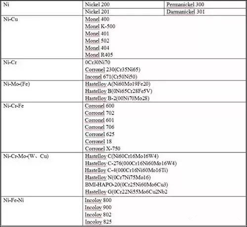 由于鈦的巨大鈍化性能,在許多情況下與異種金屬接觸時,并不加快腐蝕,而可能加快異種金屬的腐蝕。如在低濃度非氧化性的酸中,若將Pb、Sn、Cu或蒙乃爾合金與鈦接觸形成電偶時,這些材料腐蝕加快,而鈦不受影響。而在鹽酸中,鈦與低碳鋼接觸時,由于鈦表面產生新生氫,破壞了鈦的氧化膜,不僅引起鈦的氫脆,而且加快鈦的腐蝕,這可能是由于鈦對氫有高度的活性所致。 鈦中的含鐵量對某些介質中的耐腐蝕性能有影響,鐵增多的原因除原材料的原因外,常常是焊接時沾污的鐵滲入焊道,使焊道中局部含鐵量增高,這時腐蝕具有不均勻的性質。使用鐵件支撐鈦設備時,鐵鈦接觸面上的鐵沾污幾乎是不可避免的在鐵沾污區腐蝕加速,特別是在有氫存在的情況下。當沾污表面的鈦氧化膜發生機械損壞時,氫就滲入金屬,根據溫度、壓力等條件,氫發生相應的擴散,這使鈦產生不同程度的氫脆。因此鈦在中等溫度和中等壓力和含氫系統中使用要避免表面鐵污染。 在一般情況下,鈦不會發生孔蝕。 鈦還具有抗腐蝕疲勞穩定性。 鈦耐縫隙腐蝕性能較好,尤其是Ti-0.3Mo-0.8Ni及Ti-0.2Pd合金,因此Ti-0.3Mo-0.8Ni及Ti-0.2Pd合金廣泛用于容器設備的密封面材料,以解決設備密封面縫隙腐蝕問題。 2. 鈦材的應用 由于鈦材的優良耐腐蝕性能,鈦材廣泛應用于石油、化工、制鹽、制藥、冶金、電子、航空、航天、海洋等相關領域。 鈦對大多數鹽溶液來說具有優異的耐蝕性,如鈦在氯化物溶液中比高鉻鎳鋼耐蝕,并無孔蝕現象。但在三氯化鋁中腐蝕率較高,這與三氯化鋁水解后產生濃鹽酸有關。鈦對熱的亞氯酸鈉和各種濃度的次氯酸鹽也有良好的穩定性。因此鈦材廣泛用于真空制鹽和漂粉精行業。 鈦對大多數的堿溶液具有良好的耐蝕性。鈦在濃度小于50%的氫氧化鈉和氫氧化鉀溶液中較為穩定。如果堿溶液中含有氯離子或氯化物,則其耐蝕性甚至超過鎳和鋯。但在溫度和濃度增大的情況下,腐蝕會增大。現在氯堿行業是國內民用鈦材應用的最大領域。 鈦在干燥的氯氣中不耐蝕,同時有著火的危險,但在潮濕的氯氣中具有很高的穩定性,超過鋯、哈氏合金C及蒙乃爾合金,甚至在飽和氯氣的硫酸、鹽酸和氯化物等介質中也穩定,所以鈦材是硫酸法鈦白粉生產關鍵設備的首選材料。 由于鈦材在碳氫化合物中的耐蝕性很好,甚至在含有酸及氯化物類雜質時也很好。因此鈦材在有機化工中也廣泛應用,如PTA(精對苯二甲酸),PVA(維尼綸)等。 鈦材在海水中具有優異的耐腐蝕性能,因此鈦材也廣泛應用于海洋石油鉆井平臺、海水淡化等海洋領域。 鎳及鎳基合金 1.鎳及鎳基合金的國內生產狀況 國內工業用純鎳完全可以自行生產,但一些鎳基合金則主要依賴進口。 鎳及鎳基合金種類(部分有國家材料標準) ![]()