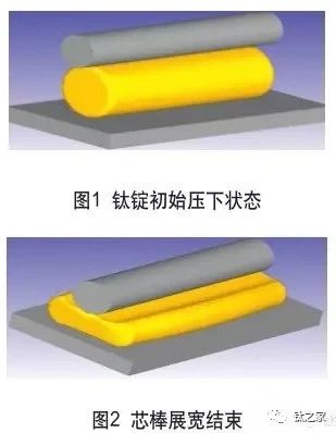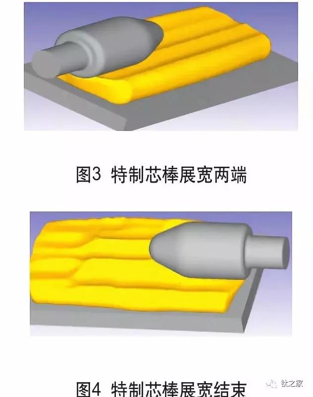 針對某公司鈦板坯鍛件,材料為TA2,要求成形尺寸2050+15 (寬)×260(高)±10× L(隨長)(m m),原材料鈦錠經過表面加工去除表 面 缺 陷 及 取 樣 后 , 尺 寸 為φ990mm×2600mm。成形寬度尺寸/原材料截面尺寸≈2.07,超過一倍尺寸。根據傳統經驗公式計算,要保證最終展寬成形 尺 寸 原 始 坯 料 截 面 直 徑 需≥ φ 1450mm。 常 規 成 形 工 藝 為 鈦 錠 先鐓 粗 , 保 證 鐓 粗 后 截 面 尺 寸≥ φ 1450mm后再進行平砧間拔長展寬。鍛造過程由于TA2的材料特性,容易造成鐓粗過程中面折疊缺陷,為防止折疊過深,需分多道次進行鐓粗,出現折疊現象后立即進行輕滾圓拔長后再進行鐓粗,嚴重影響鍛造效率及鍛造質量。采取直接拔長的方式進行展寬,在試驗前通過有限元數值模擬分析軟件對試制方案進行分析,最終通過實際生產驗證工藝方案的可行性。 1.工藝方案 鍛造工藝路線:芯棒展寬→換專用芯棒繼續展寬→上下平砧成形修整,選用50MN快鍛壓力機進行整個鍛造工序。具體過程為:將鈦合金錠平放在大平板上,上端采用 φ 630mm芯棒分兩次進行壓扁,總壓下量控制在300mm左右,左右移動芯棒進行展寬至坯料高度約為550mm。為防止芯棒展寬過程中出現板坯料中間尺寸偏大,兩端偏小的情況,特制專用芯棒進行進一步展寬,展寬至寬度約為2000mm,高度約為440mm。最 后 采 用 特 制 上 平砧 ( 7 0 0 m m 砧 寬 , 砧 長2300mm)、下平板進行拔長及整形。 2.工藝的數值模擬 (1)模型建立及參數設定采用SolidWorks軟件上對鈦合金錠、芯棒、特制芯棒、下平板、上下平砧進行三維建模,并導入有限元模擬軟件中。TA2材料屬性由數據庫中已有的模型導入,由于采用快鍛壓力機,設定正常開啟5臺泵的上砧平均壓下速度下限約為50mm/s。采用六面體網格對鈦錠模型進行網格劃分,為保證模擬的準確性,設定網格數量32000個。數值模擬的其他參數如附表所示。 利用數值模擬形成的工藝參數,在生產實際中進行試驗,圖7為最終鍛造成形的TA2板坯,試驗過程中在厚度約為265mm時,展寬最寬點達到2150mm,與優化后仿真結果非常接近。且兩端頭舌頭長度僅約50mm,低于常規鈦板成形的舌頭長度150~250mm。最終通過加工后材料利用率達到91.6%,高于常規的鈦板成形利用率約2%,符合最終成形的質量要求。 ![]() |