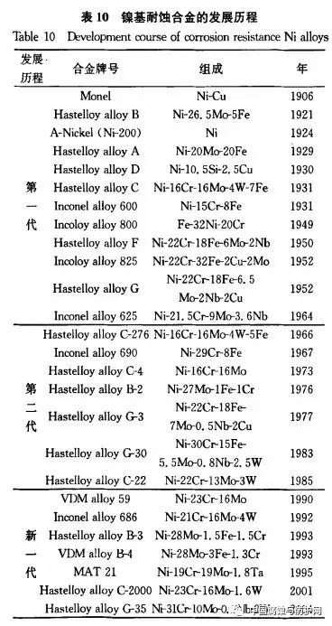 3.2國內概況 我國自20世紀50年代開始仿制、改進國外牌號的鎳基合金,到70年代末已有10多種牌號。80年代以后,研制有了較大進展并有了一些新牌號的鎳基合金。1984年重慶儀表材料研究所根據苛刻環境下工業過程檢測與控制儀表對耐蝕合金的需要,研制出了Ni-Cr-Mo耐蝕合金,定名為3YC24合金。1986年鋼鐵研究總院發明了適用于沸騰氫氟酸液、氣相和濕氯、濕氟以及鹽酸和硫酸等苛刻腐蝕環境的鎳基耐蝕合金,特別是在沸騰氫氟酸中,其耐蝕性比Hastelloy C-4和Hastelloy C-267提高J,100倍。1994年公布的鎳基耐蝕合金牌號有23種、高溫合金牌號有24種。部分牌號與國際牌號的對應如表11所示。 國內Monel合金的使用較少,特別是Monel合金閥門幾乎全部靠進口。錦州鐵合金股份有限公司開發了可替代進口產品的Monel合金。Inconel 600在我國的生產和應用尚處于起步階段,應用范圍有限,僅限于少數引進設備及零部件。中國化學工程第十四建設公司承建的浙江衙州臣化(集團)公司氟化工程,部分工藝管道采用了美國進口的In-conel 600合金管道。為了打破發達國家的壟斷,四川川投長城特殊鋼股份有限公司成功地開發出Incoloy 800、Incoloy 800H、Inconel 625、Inconel 690、NSl41等耐蝕合金的板、管等犁材。 4展望 鎳基耐蝕合金因其良好的力學性能、加工性能及耐腐蝕性,越來越廣泛地應用于工業領域。我國有豐富的鎳資源, 隨著經濟的快速發展,鎳合金將保持旺盛需求。因此,鎳基合金的研究開展對充分利用金川集團公司鎳鈷資源的優勢、拓寬公司特種合金材料廠的產品領域、提升企業在鎳合金制品深加工領域的能力、擴大產品的市場覆蓋面具有重要的經濟和實用意義。筆者認為今后鎳基耐蝕合金應在以下幾個方面加強研究。 (1)應加快開發新型鎳基耐蝕合金,加強對其應用領域拓寬的研究; (2)針對工程領域,深入研究相關工業設備制造的成型、焊接、熱處理等關鍵工藝參數; (3)研究更多復雜、苛刻腐蝕條件下的腐蝕行為與機理。 |